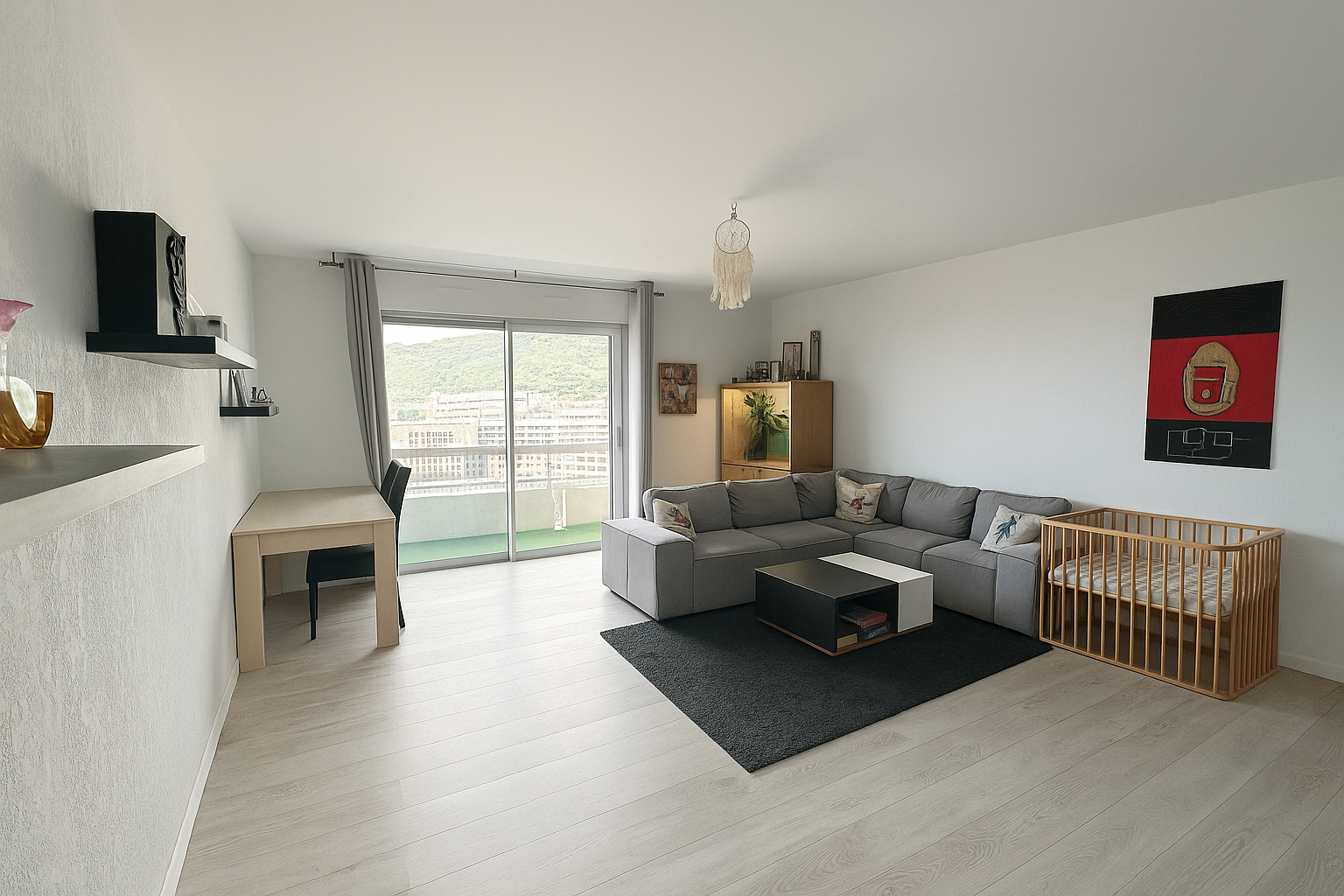 Toutes les pièces sont desservies par une terrasse ou un balcon. A cela s’ajoutent une cave et une place de parking privative.