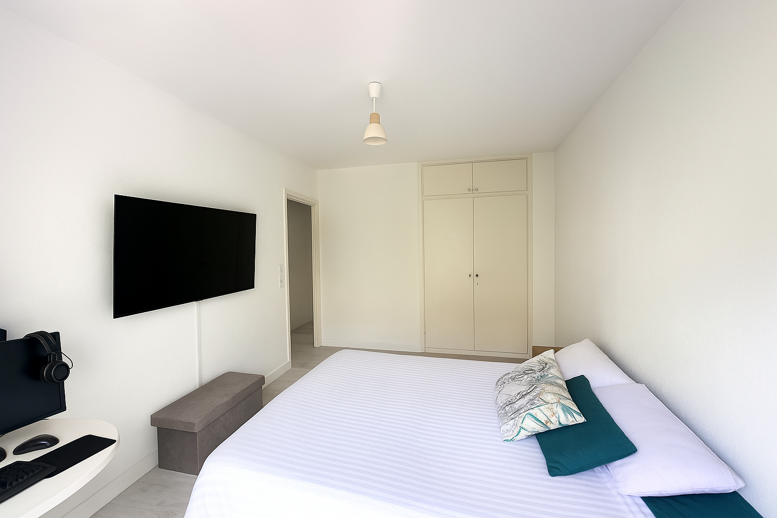 Au 6ème et dernier étage avec ascenseur, il comprend un hall d’entrée avec placard aménagé et intégré, un séjour desservi par une terrasse couverte et offrant une vue panoramique sur la ville, une cuisine aménagée et semi-équipée, deux chambres avec placard aménagé et intégré, un WC séparé et une salle de bains.