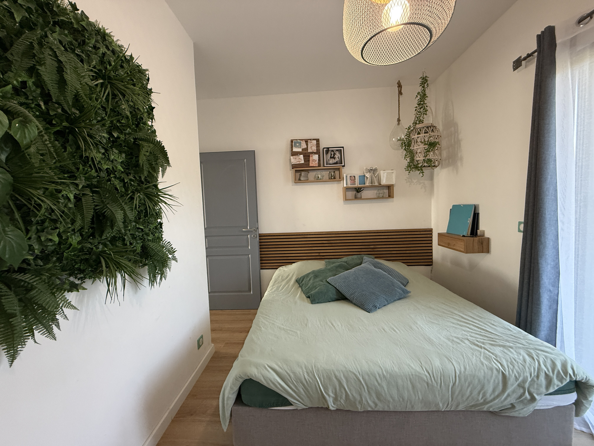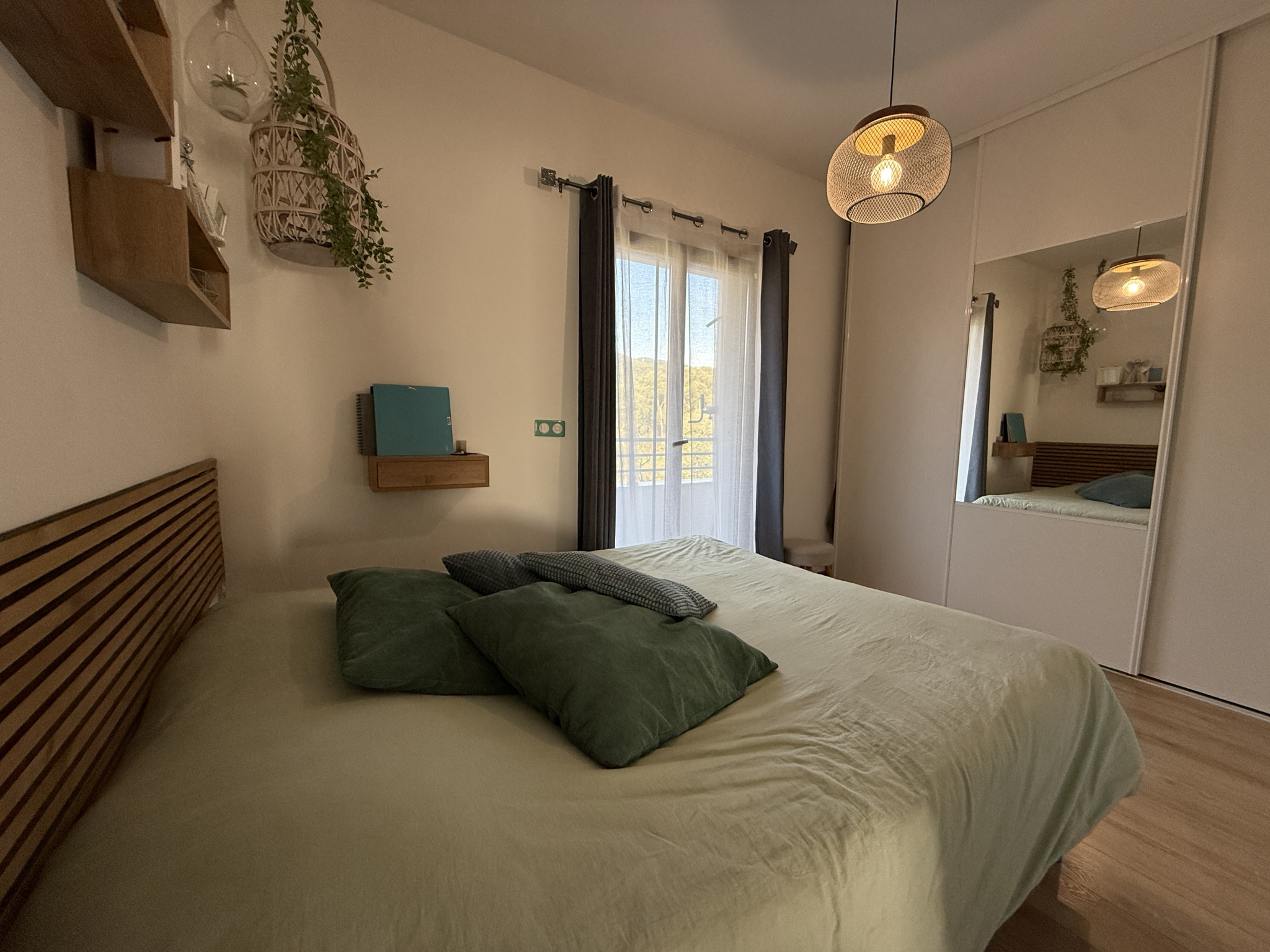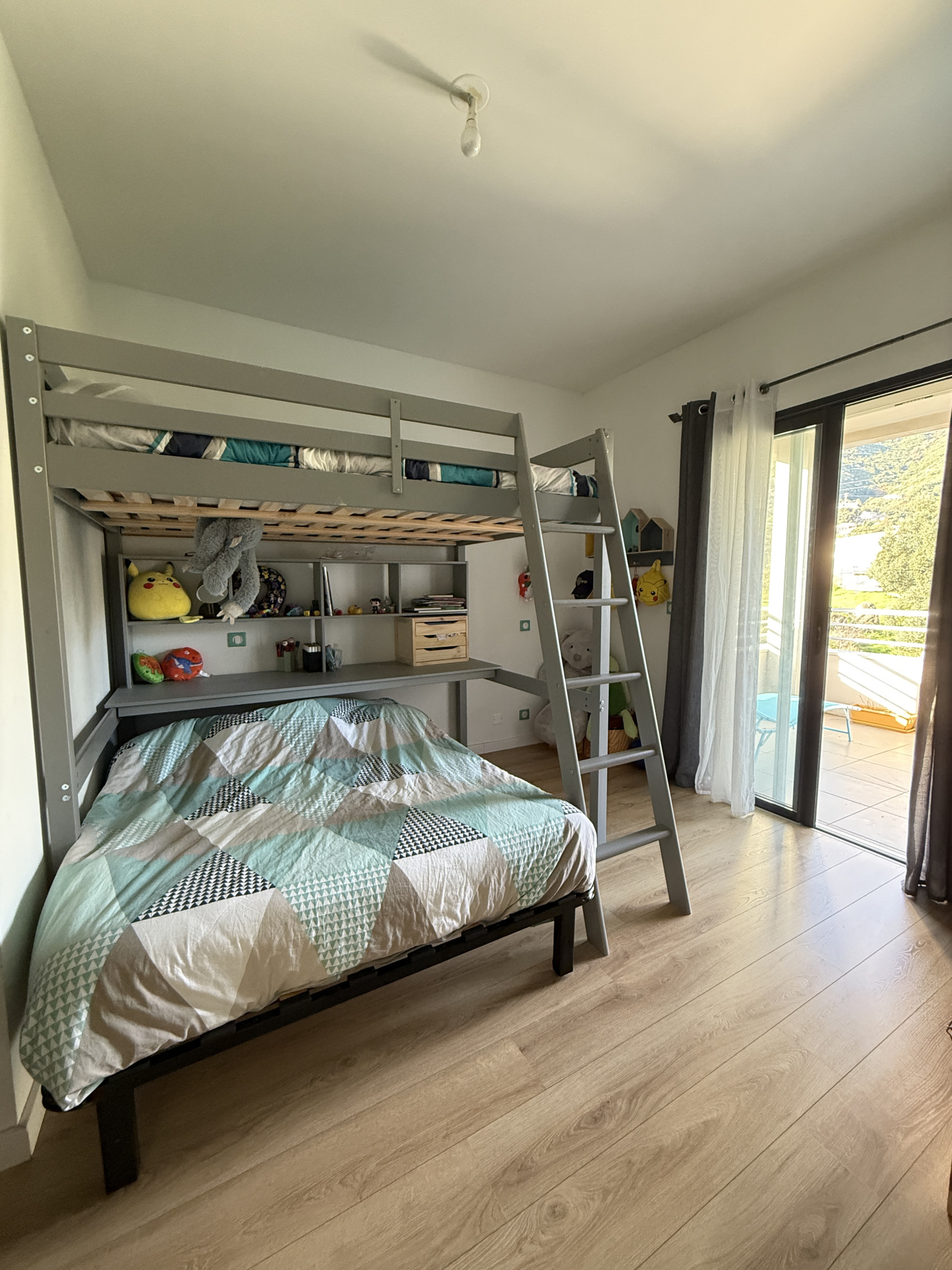 L’espace nuit se compose de deux chambres confortables, d’une salle de bains ainsi que d’une seconde terrasse côté montagne, sans aucun vis-à-vis, offrant calme et intimité.