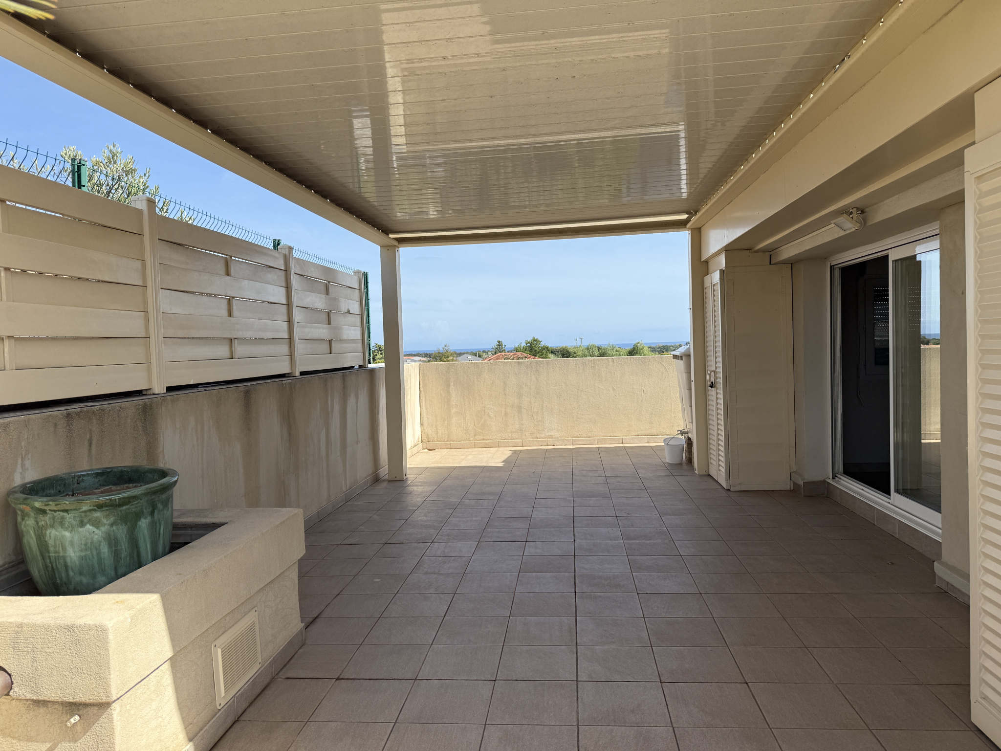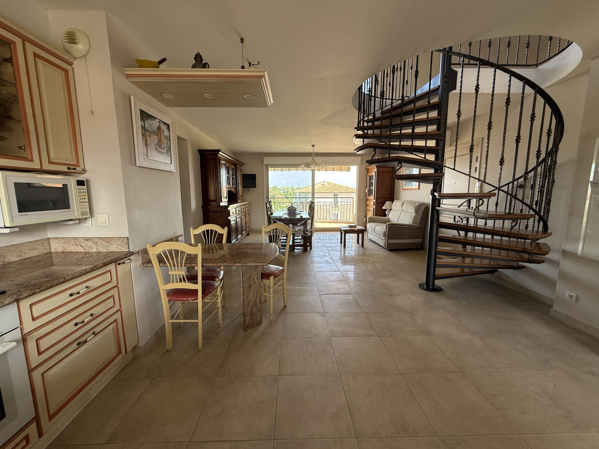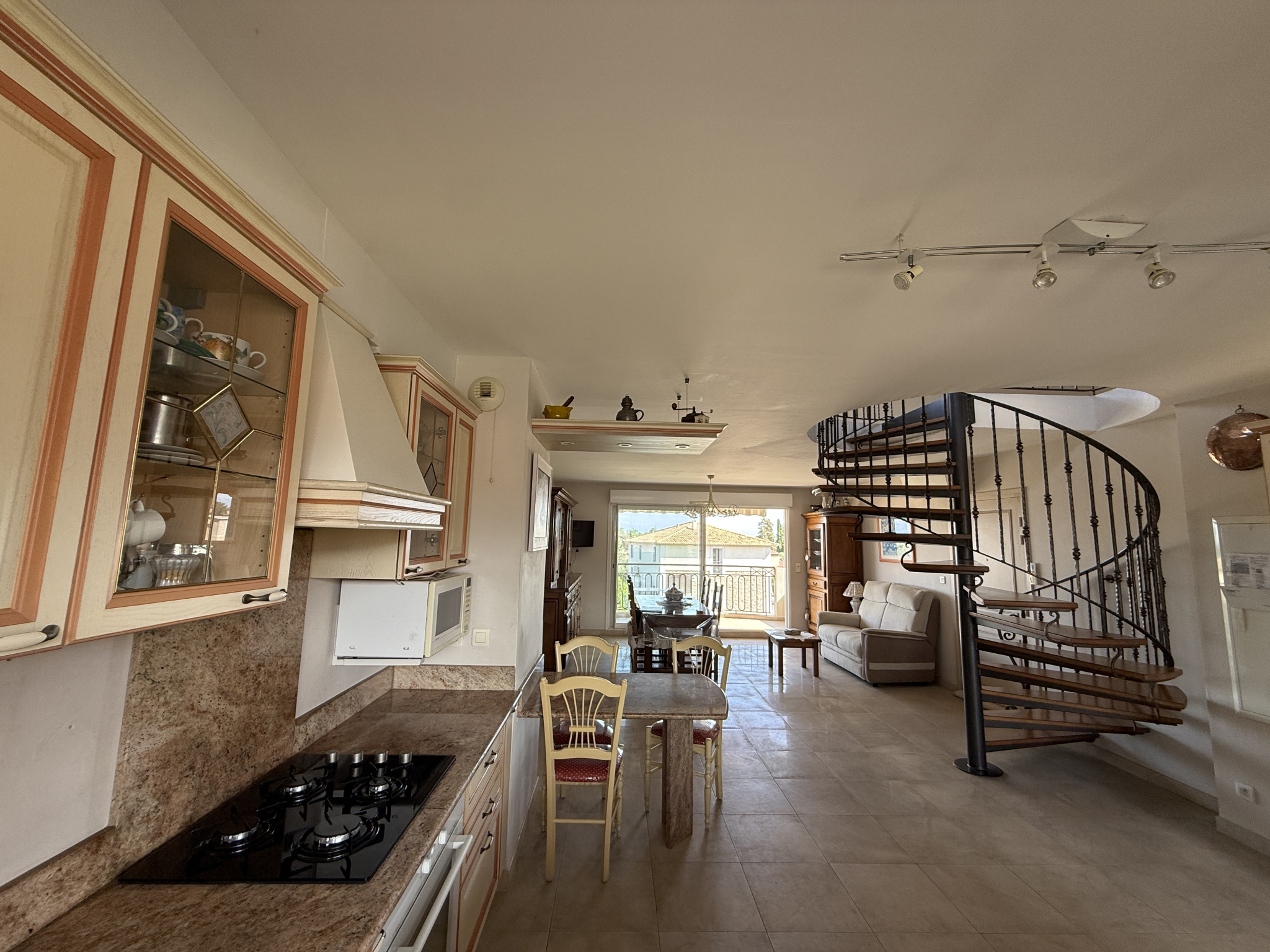 AVIS DE L ‘AGENCE : C’est un bain de lumière qui, dès l ‘entrée, vous accueille et dévoile les beaux volumes qu’offre ce duplex qui cultive douceur et confort. PRESTATIONS : pièces climatisées, alimentation électrique séparée pour chaque niveau, double vitrage, volets roulants électriques et manuels (pré-installés pour équipement électrique), escalier intérieur en fer forgé, cellier, balcons, terrasse, pergola climatique, VMC, cuisine équipée, deux salles d’eau, chambres climatisées avec rangement, porte à serrure renforcée, digicode et place de parking.