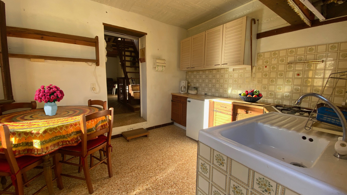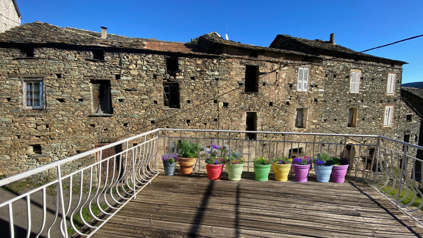 Située au coeur d’un authentique village corse, entourée de petits jardins en terrasse, de murets ‘en pierre sèche’ et d’une végétation omniprésente, cette maison en pierre d’environ 55 m2 sur 3 niveaux, mitoyenne, déroule sa minéralité et cette force brute qui raconte une histoire, celle d’une famille, d’un terroir et d’une île riche en tradition et en caractère. Salle d’eau, WC et buanderie, accessibles de l ‘extérieur par une deuxième porte et des escaliers intérieurs constituent la base de cette maison aux murs épais. Cuisine et salon et placards muraux sont accessibles par une terrasse en pierre, posée à même le sol délimitant le niveau un de cet ensemble. A l ‘étage, une chambre, des rangements et un espace lave-mains, se terminent par une grande terrasse de 12 m2 et un balcon d’environ 2 m2.AVIS DE L’AGENCE : Idéale pour les vacances ou pour les amoureux de minéralité, de panorama, de montagnes escarpées, de forêts épaisses, d’atmosphère chaleureuse, de poutres en châtaignier et de parfums apaisants ! Ici, la dureté du minéral se mélange à la douceur du végétal dans un chapelet de maisons en pierre massive ancrées dans la roche, se blottissant les unes contre les autres, formant une harmonie presque organique, témoignage d’une communauté unie par la terre et l’histoire. Des travaux de mise au goût du jour sont à prévoir. Possibilité est offerte de créer une deuxième chambre indépendante.PROXIMITE : restaurant, épicerie, produits corses. L’école maternelle et primaire fait partie d’un regroupement pédagogique intercommunal concentré. Création d’un Pôle Inclusif d’Accompagnement Localisé.TRANSPORT : bus scolaire.DPE vierge.Les honoraires d’agence sont à la charge du vendeur.