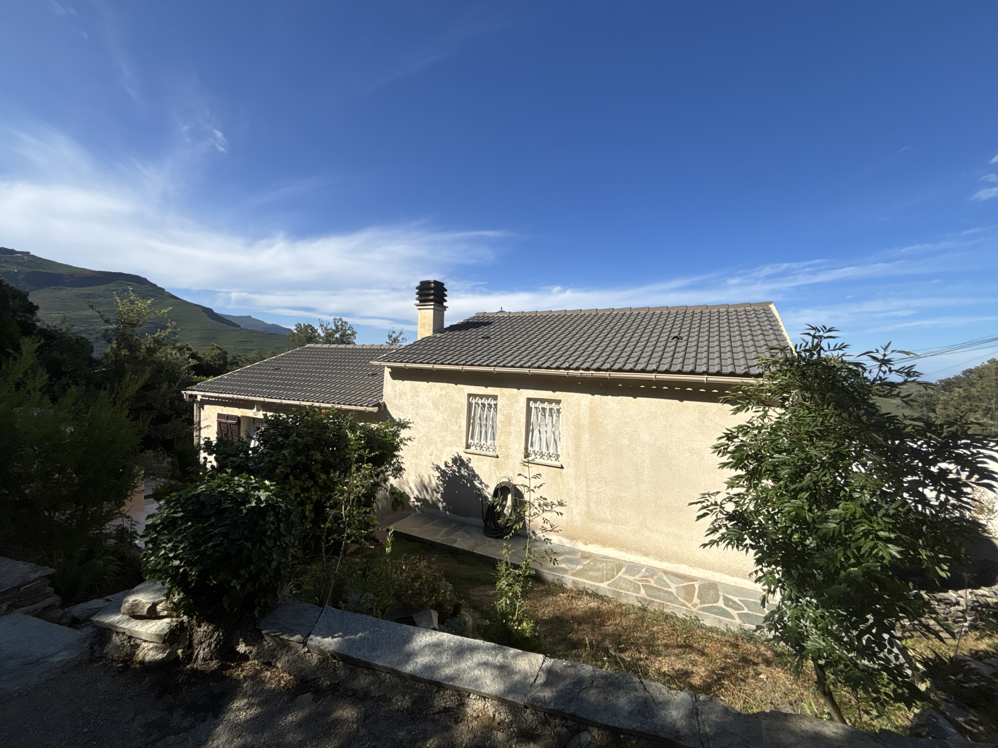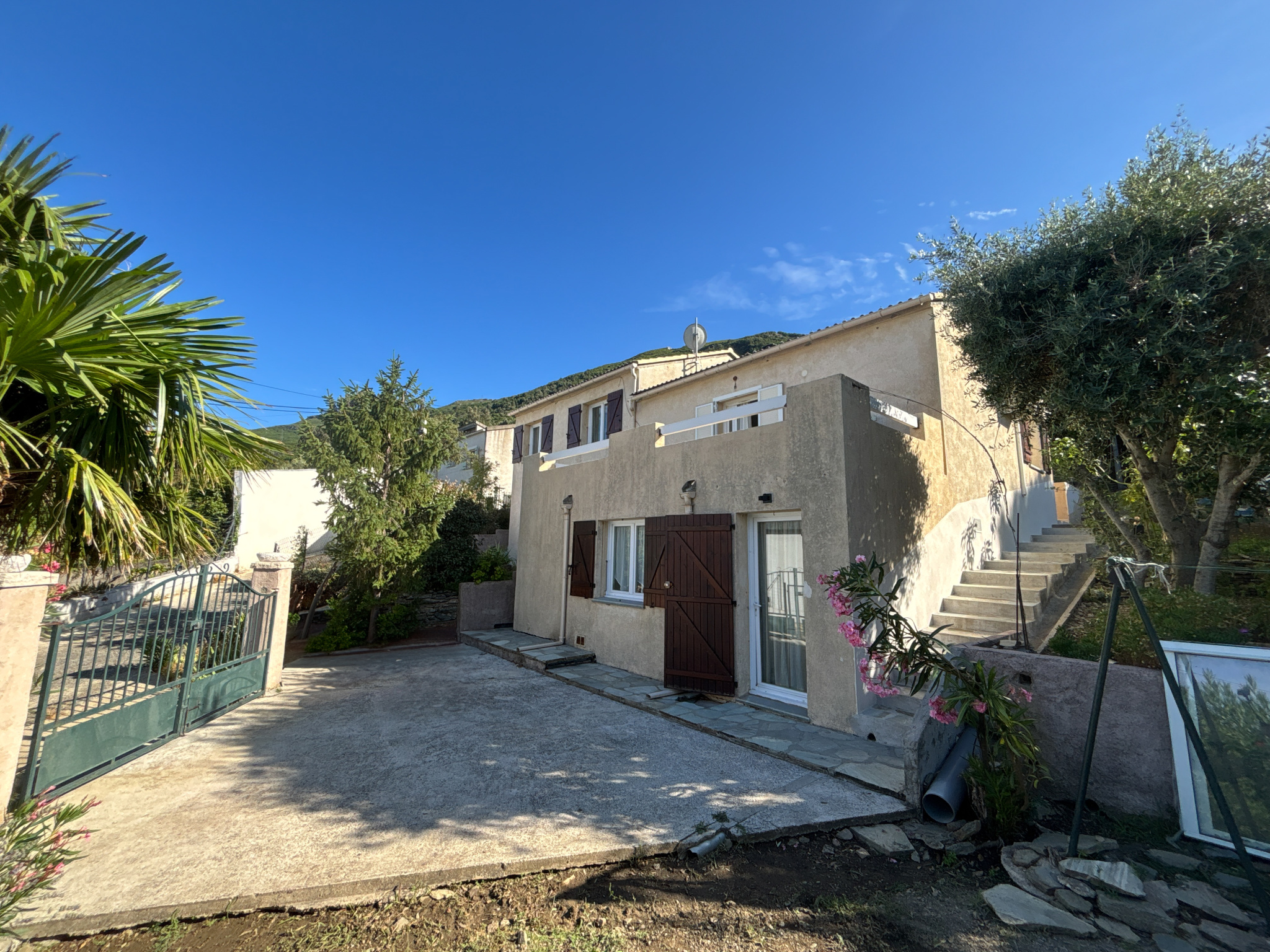 A 15 minutes d’une des premières plages du Cap Corse, à 15 kms de bastia, au coeur d’un hameau riche de ses espaces naturels et de son abondance végétale, une maison d’habitation traditionnelle d’environ 76 m2 élevée sur des caves et un studio destinée à la location avec entréeS et parkings indépendants.Au centre d’une parcelle d’environ 790 m2, aménagée en jardin d’agrément et parkings, cette villa, de plain-pied, se décline en un grand séjour-cuisine climatisé avec cheminée-insert et terrasse, un dégagement, deux chambres et une salle d’eau avec WC.